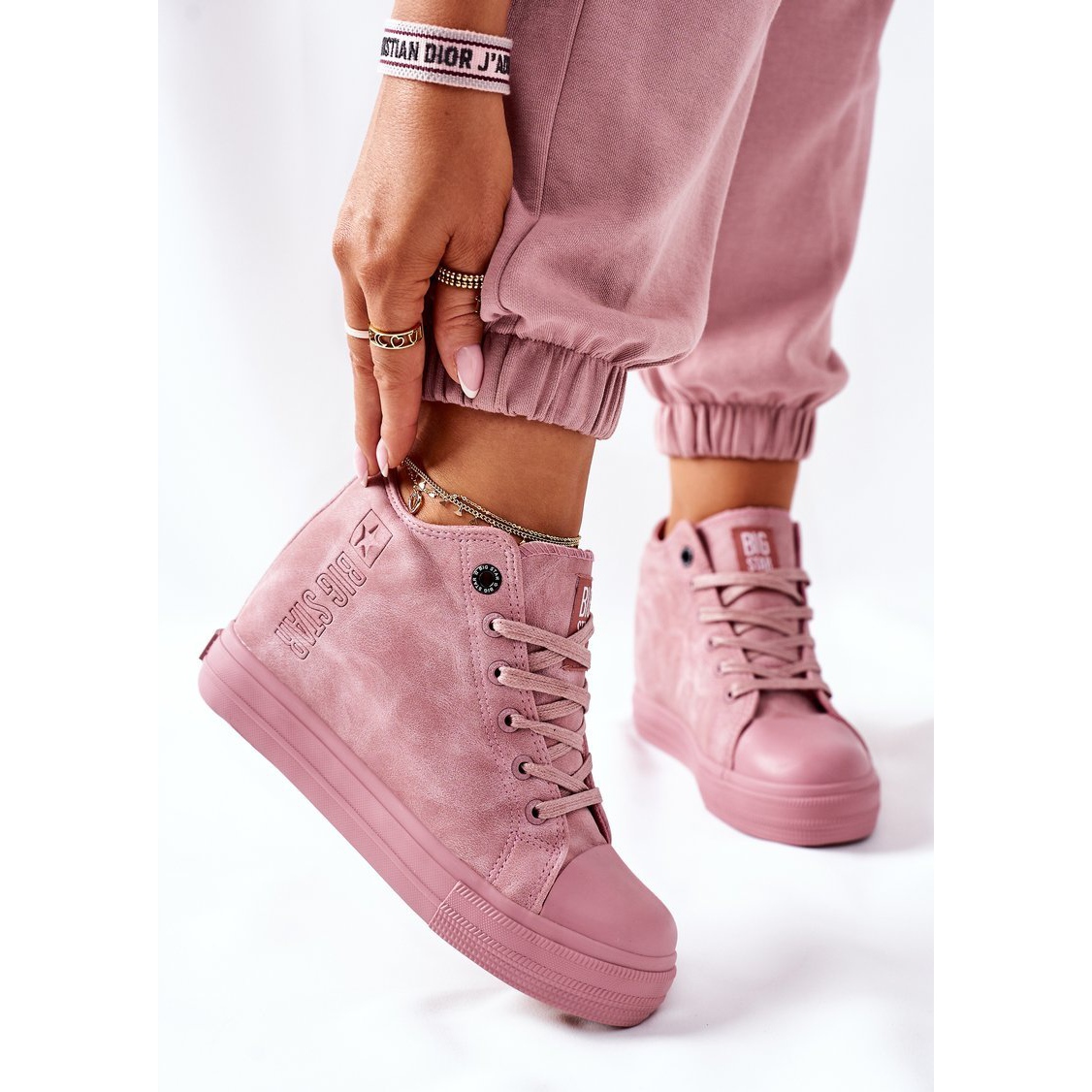 Wir präsentieren die Lederkeilsneaker Big Star II274092 in einer wunderschönen rosa Farbe, die Komfort und modischen Stil perfekt vereinen. Sie bestehen aus hochwertigem Faux-Wildleder und sorgen nicht nur für ein elegantes Aussehen, sondern auch für Langlebigkeit und Tragekomfort.