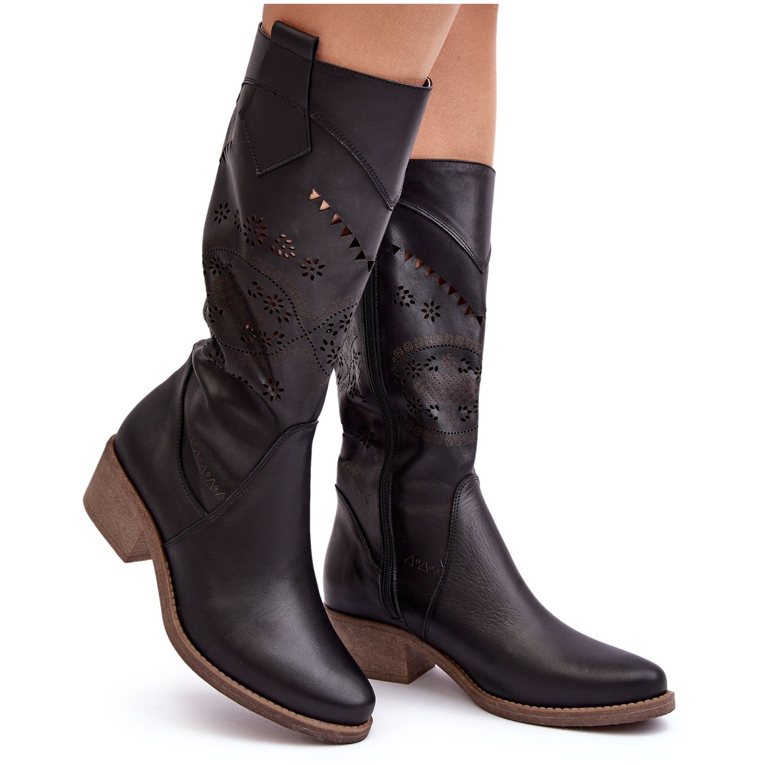Lederstiefel mit offenem Muster Sierra - Schwarz