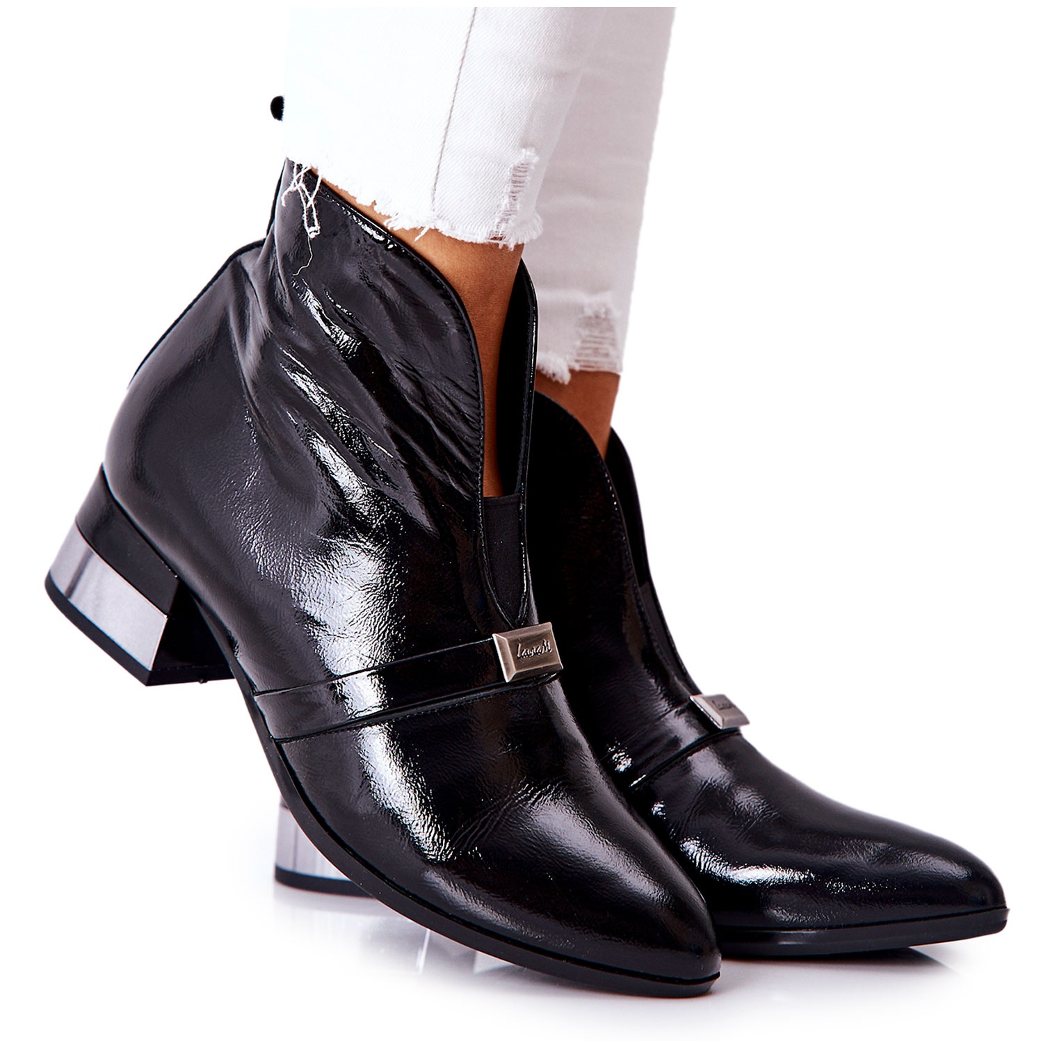 Die Stiefeletten von Laura Messi haben eine Schafthöhe von 12 cm, was sie perfekt für die Herbst-Winter-Saison macht, allerdings ohne Isolierung, was die Tragemöglichkeiten erweitert. Dank ihrer lackierten Oberfläche werden sie Aufmerksamkeit erregen und sich von anderen Modellen abheben.
