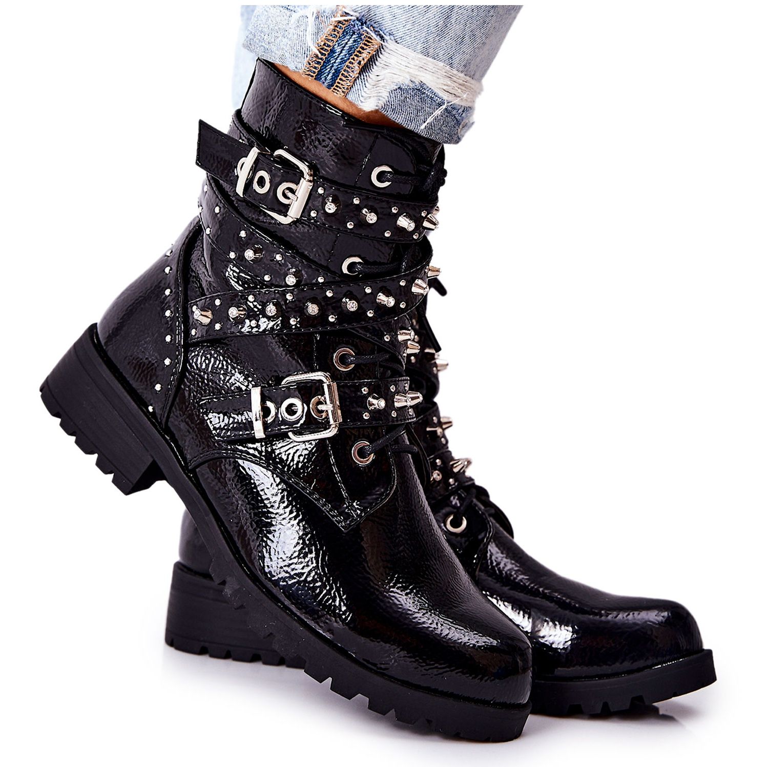 Inna marka Lederstiefel mit Riemen Schwarz Kepherine