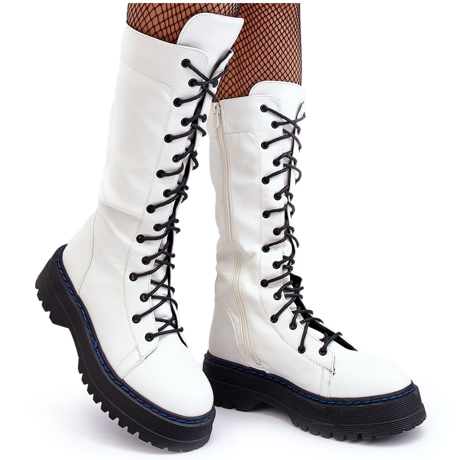 Inna marka Lederstiefel mit Schnürstiefeln mit Reißverschluss, weiße Zoraida