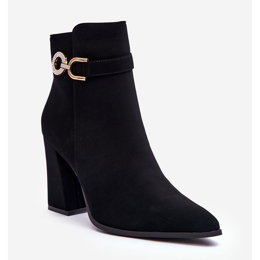 Elegante, warme und komfortable - Lymallstiefel sind die perfekte Wahl für kühlere Tage. Aus ökologischem Leder aus Wildleder, eingebettet in einen stabilen 9,5 -cm -Pfosten, kombinieren sie Frauen mit dem Alltag. Ein zartes Riemen mit Zirkonen und Strasssteinen verleiht ein subtiles Leuchten, dank der die Stiefel sowohl für lässige als auch für etwas elegantere Stile funktionieren werden.