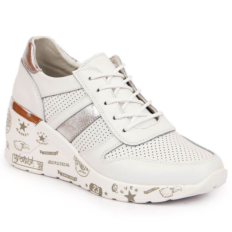 Filippo Elegant und universelle Sneakers in Paw323 sind ein Vorschlag für Frauen, die jeden Tag Komfort und modisch schätzen. In natürlicher Leder, in einer klassischen weißen Farbe, werden sie die städtischen und lässigen Stylisationen perfekt ergänzen und dank einer stabilen Plattform einige Zentimeter hinzufügen.