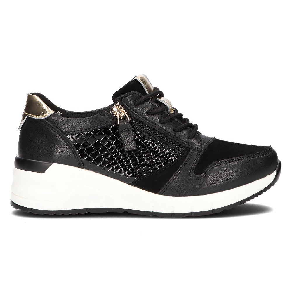 Die Sneaker verfügen über einen Schnürverschluss, der ein einfaches Anziehen und Anpassen ermöglicht, und ihre synthetische Sohle sorgt für guten Halt auf verschiedenen Oberflächen. Die Plateauhöhe von 1,5 cm und die Keilhöhe von 4 cm sorgen für Eleganz, verlängern die Silhouette leicht und bleiben auch bei längerem Tragen bequem.