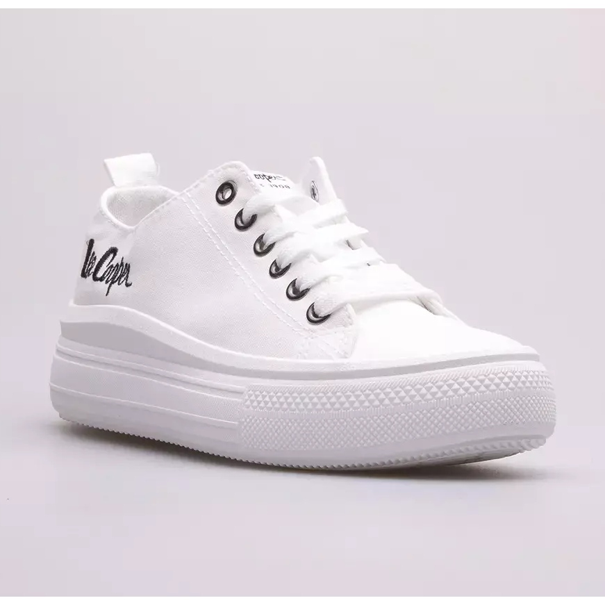 Dank des Fehlens von Mustern sind die weißen Lee Cooper LCW-23-44-1623L-Sneaker universell einsetzbar und lassen sich problemlos mit verschiedenen Farben und Kleidungsstilen kombinieren. Der Schnürverschluss ermöglicht eine perfekte Anpassung an den Fuß, was den Tragekomfort zusätzlich erhöht.