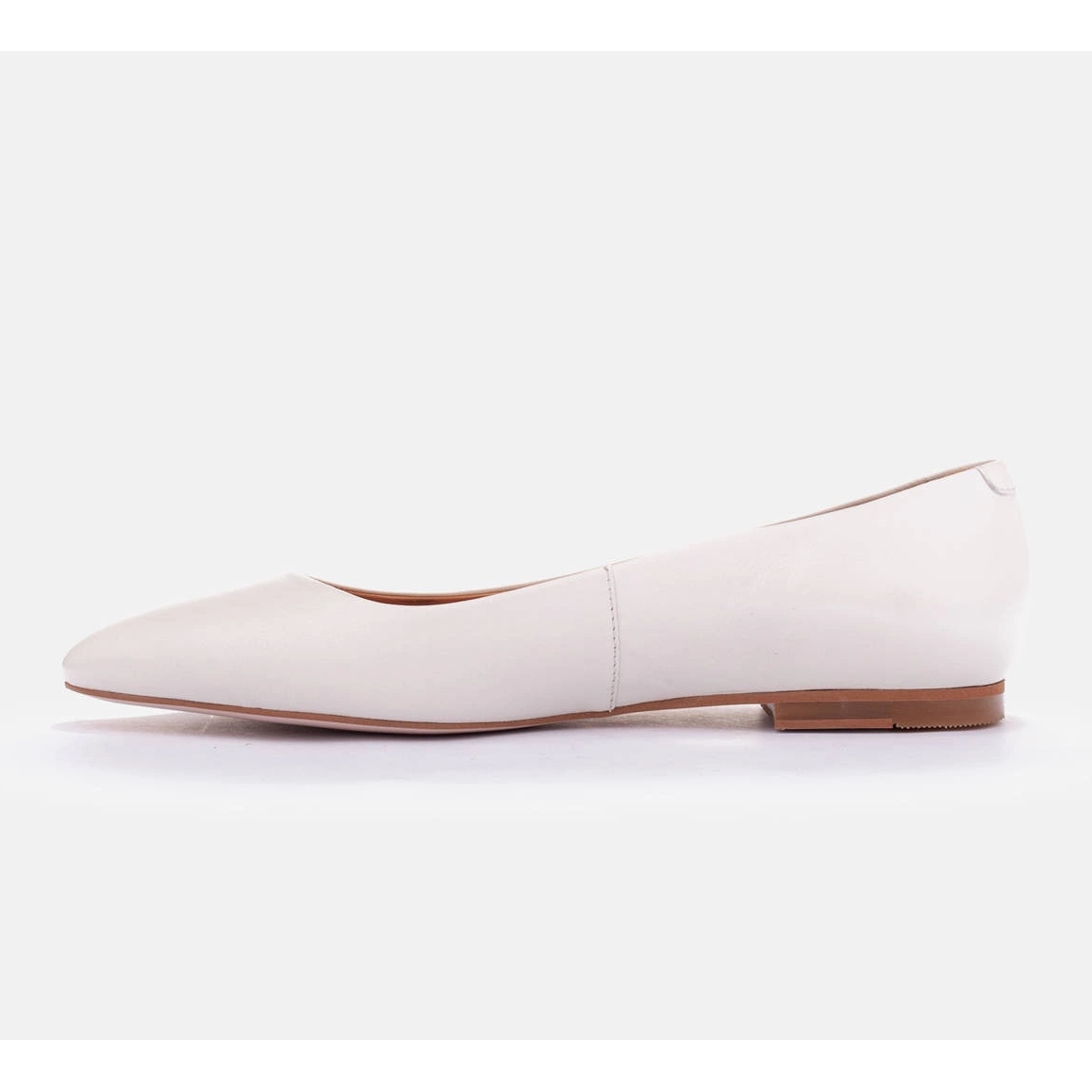 Klassische, leichte und elegante Marco -Schuhe Ballerinas in universeller weißer Farbe. Sie bestehen aus hochwertigem natürlichen Getreideleder und kombinieren den Komfort des Alltags mit zeitlosen Stil - ideal für das Büro, für Besprechungen und einen Spaziergang durch die Stadt.