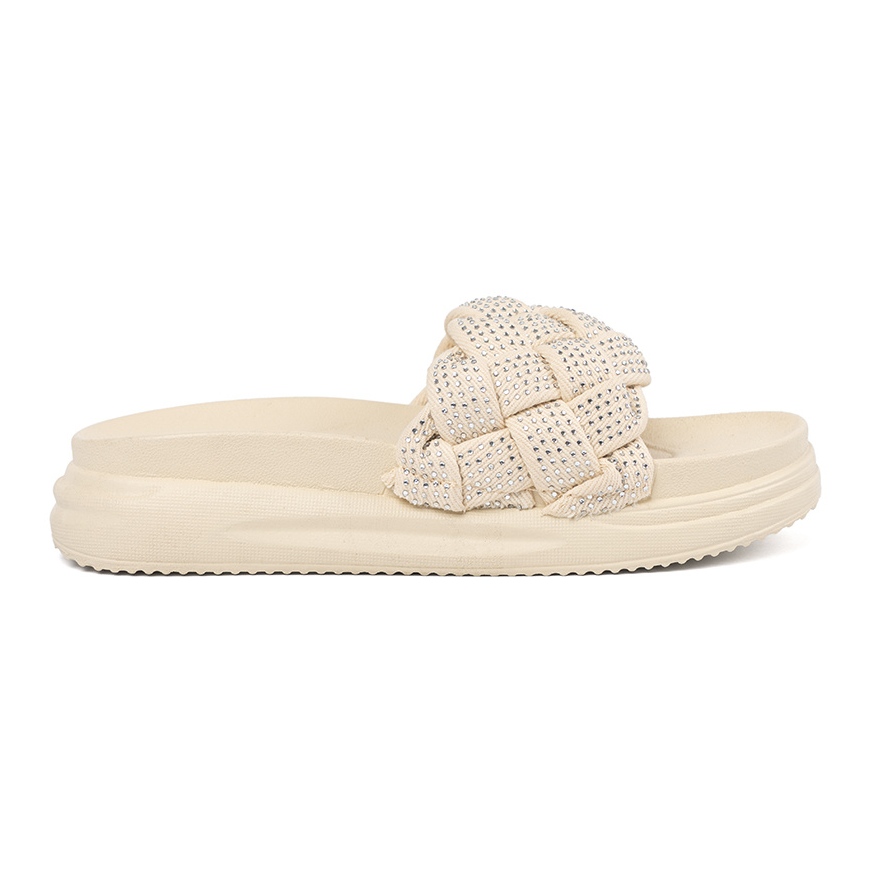 Entdecken Sie modische Seastar zehenstegsandalen in einer leichten Beigefarbe, die eine hervorragende Ergänzung zu Sommerstilisierungen darstellt. Diese einzigartigen Flip -Flops, die mit eleganten Kristallen dekoriert sind, erregen Aufmerksamkeit und verleihen jedem Outfit glänzen, perfekt in den lässigen Stil.