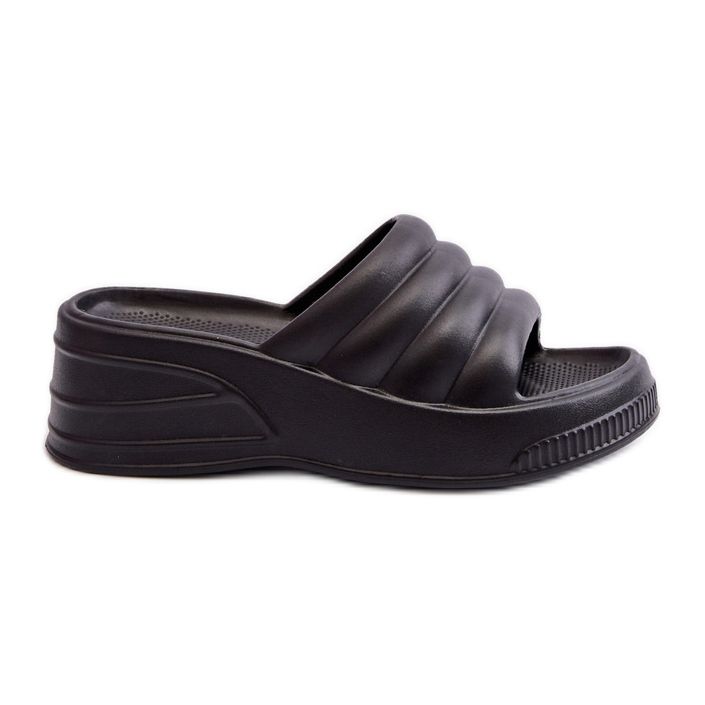 Leichte Schaum -Frauen -Hausschuhe auf einem Keil und einer schwarzen Plattform sind eine gute Wahl für Sommertage am Pool oder im Garten. Sie bestehen aus hochwertigem Schaumstoffstoff und bieten nicht nur Komfort, sondern auch außergewöhnliche Leichtigkeit, was das Tragen von ihnen zu einem reinen Vergnügen macht.