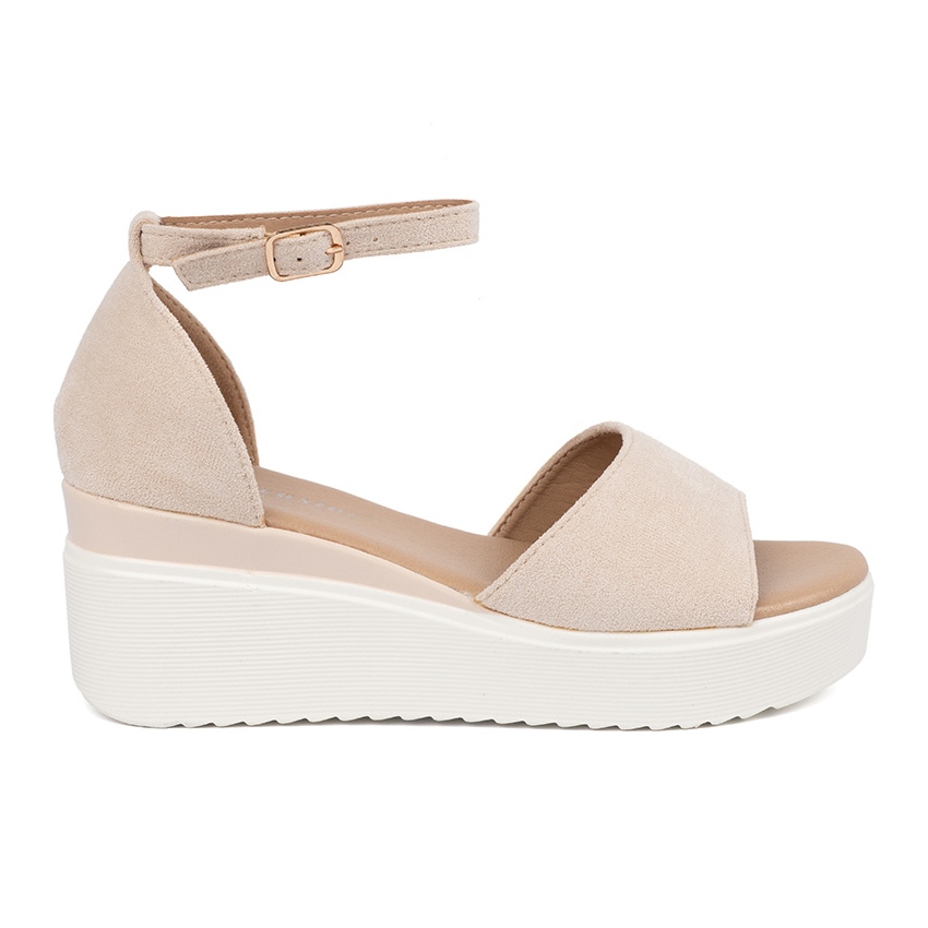 Sandalen zeichnen sich durch eine gebaute Ferse und eine offene Nase aus, die Stabilität und volle Bewegungsfreiheit gewährleistet. Sie bestehen aus hochwertigem ökologischem Wildlederleder und ziehen nicht nur Ihre Augen an, sondern sind auch umweltfreundlich. Das ökologische Leder zeigt Haltbarkeit und vermittelt ein Gefühl von Luxus, und das in derselbe Technologie auch in der gleichen Technologie hergestellte Innenstoffmaterial garantiert das Vergnügen, den ganzen Tag über zu tragen.