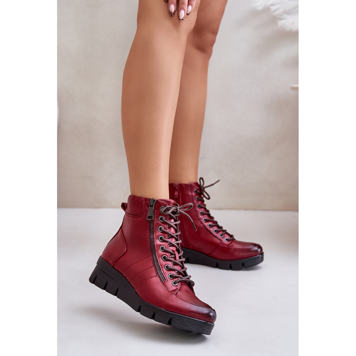Details: Leichte, isolierte Damenstiefeletten mit Plateau und Keilabsatz, Burgunderrot, Savindria
