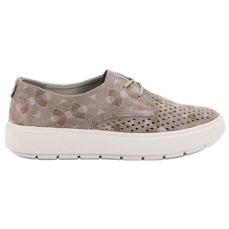 Das in gedämpften Braun- und Beigetönen erhältliche Modell zeichnet sich durch eine moderne, durchbrochene Verarbeitung aus, die ihm Leichtigkeit und einen einzigartigen Charakter verleiht. Sie passen problemlos in eine Vielzahl von Stilen – von lässig bis elegant, was sie zu einem Lieblingspaar für Frühling und Sommer macht.
