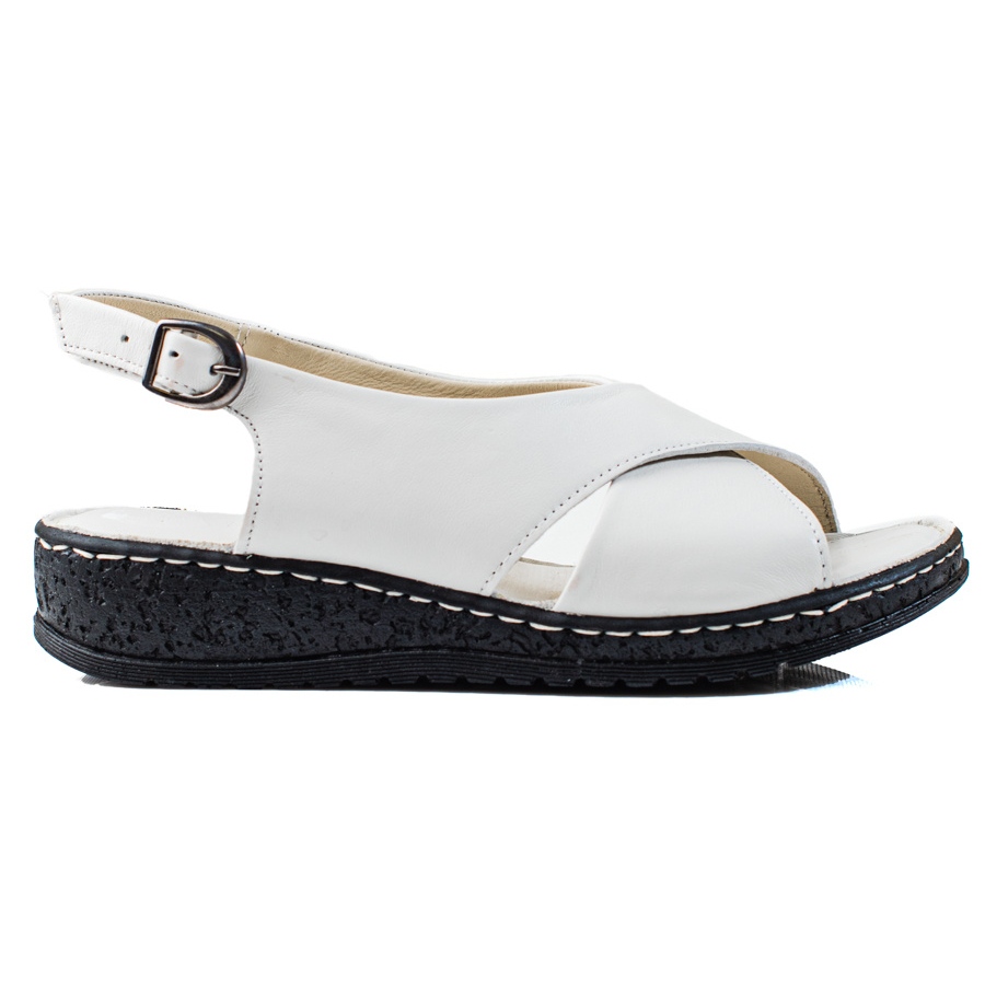 Die Sandalen werden mit einer Schnalle befestigt, was eine einfache Anpassung an den Fuß ermöglicht. Die Kunststoffsohle mit Profil garantiert guten Halt und Stabilität, unabhängig vom Untergrund. Der klassische Schnitt ohne Spitze und das Fehlen zusätzlicher Muster machen Potocki-Sandalen äußerst universell – sie passen perfekt zu Sommerkleidern, Shorts und Röcken.