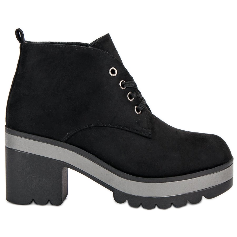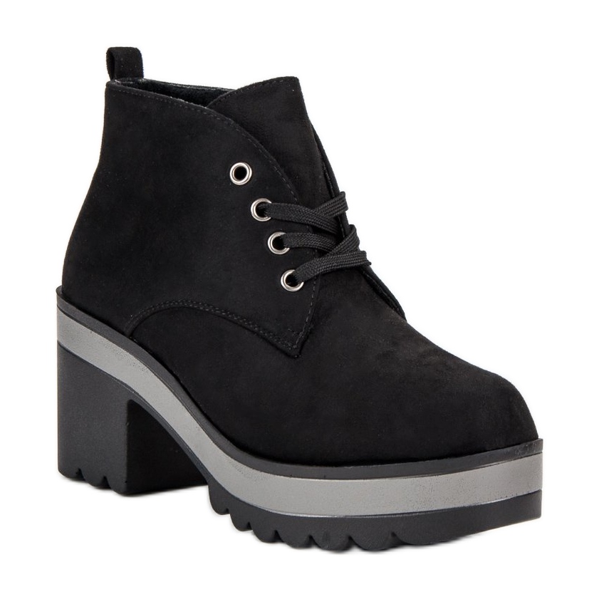 Die Stiefel haben einen soliden 8 cm hohen Absatz, der für Eleganz sorgt, sind aber dank des 3,5 cm hohen Plateaus äußerst stabil. Der Schnürverschluss sorgt für eine perfekte Passform am Fuß.