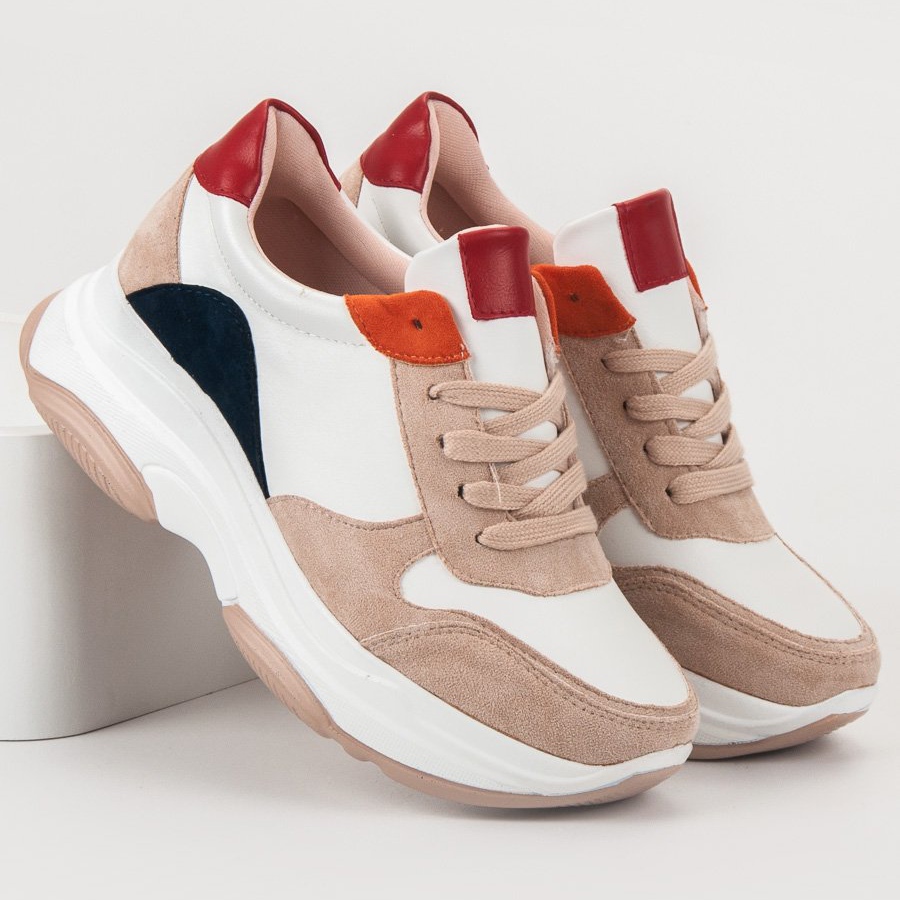 Die hellbraunen, mehrfarbigen Sneakers von SDS sind ein ideales Angebot für aktive Frauen, die sowohl Wert auf Stil als auch auf Tragekomfort legen. Dank der einzigartigen Kombination verschiedener Farben heben sich diese Sneaker von anderen Modellen ab und verleihen jedem Styling Originalität und Charakter.