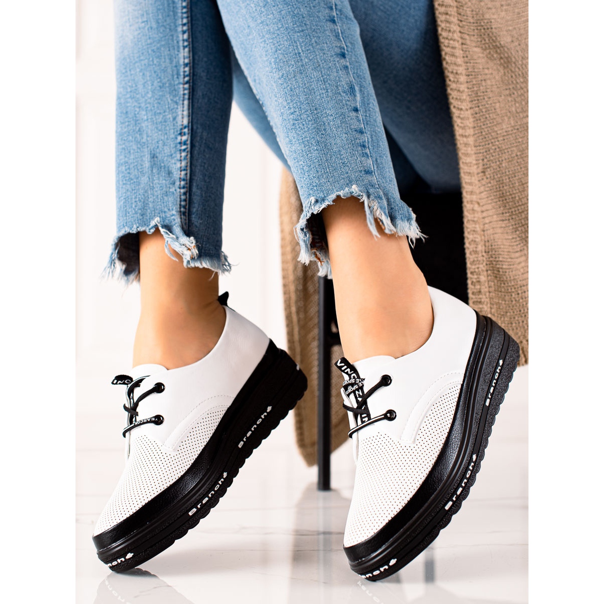 Wählen Sie leichte Vinceza-Schuhe, die eine perfekte Ergänzung Ihrer Garderobe für Frühling, Sommer, Herbst und Winter sein werden. Dank der universellen weißen Farbe können Sie sie problemlos sowohl zu legeren als auch zu eleganteren Outfits kombinieren. Gönnen Sie sich ein wenig Luxus und Komfort, indem Sie sich für ein Modell entscheiden, das mit Sicherheit alle Blicke auf sich zieht!