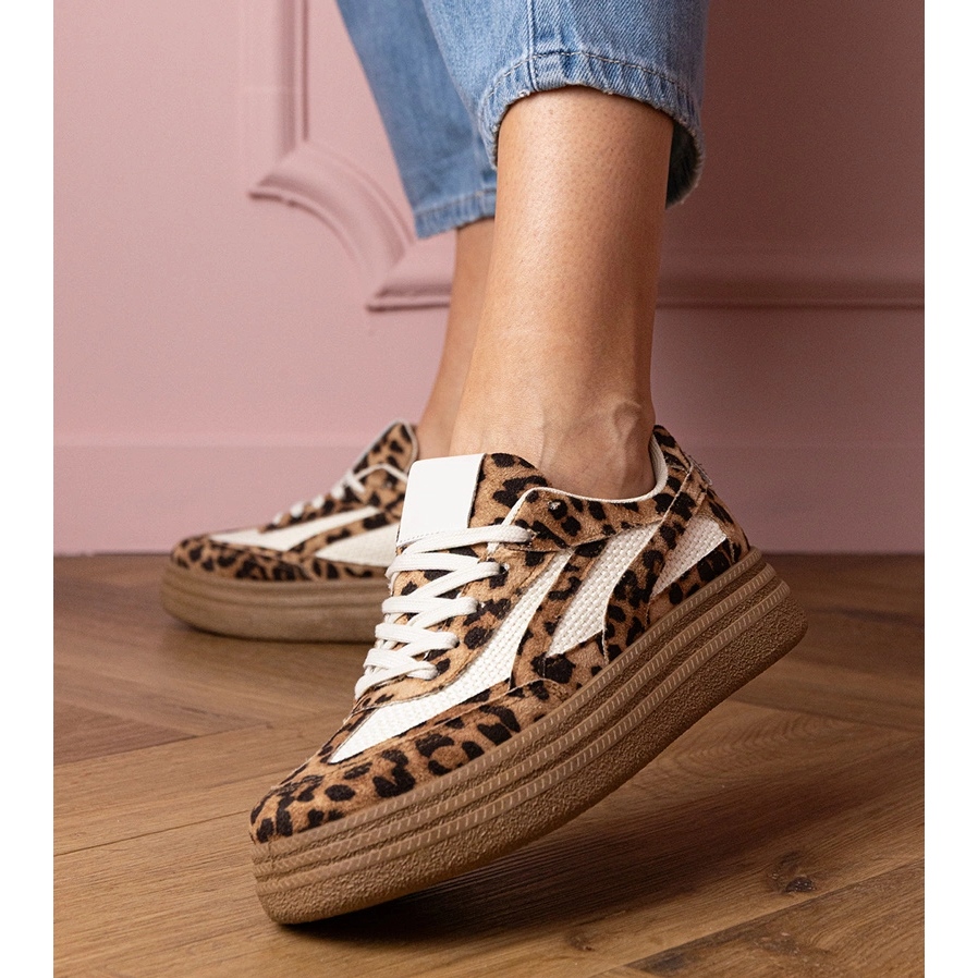 Details: Leopard -Turnschuhe Sneakers auf einer dicken Sohle braun