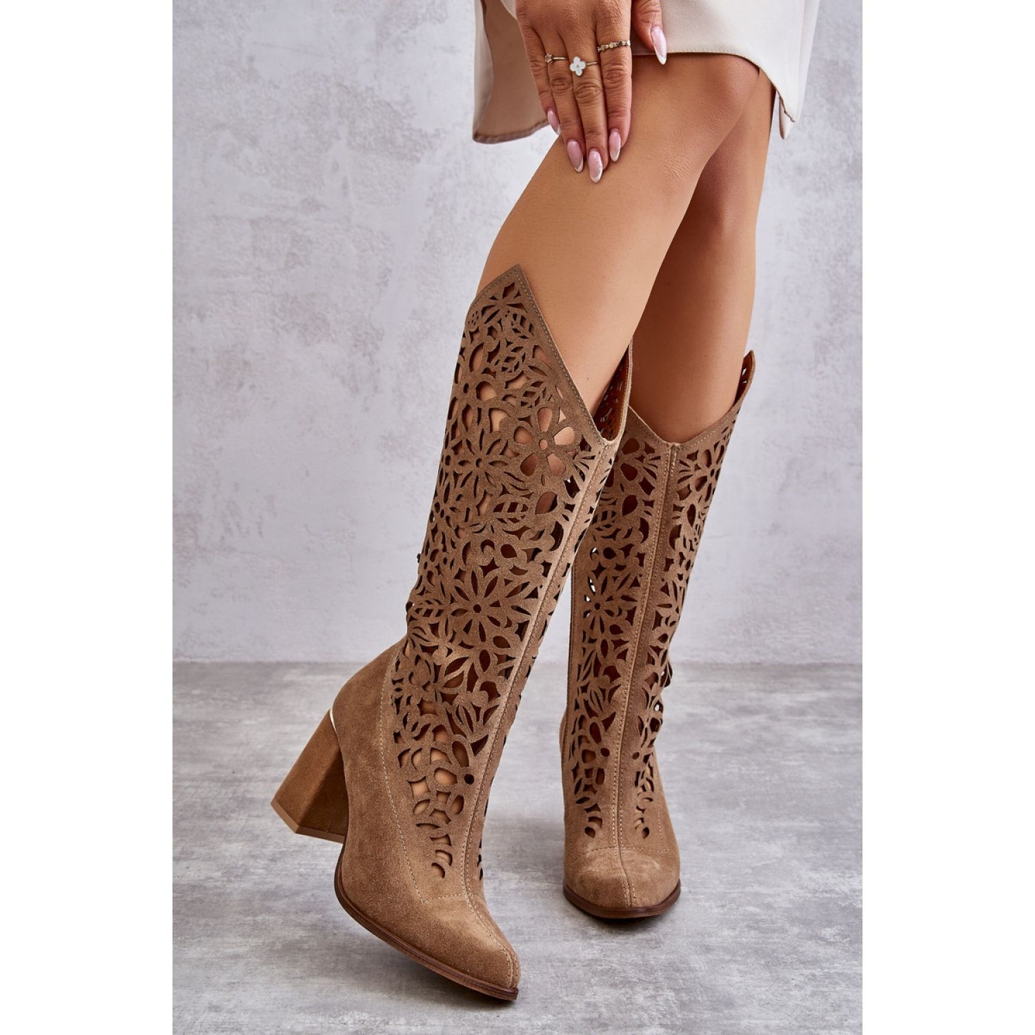 Wir präsentieren Lewski -Schuhe 3234 Stiefel in einem eleganten Schatten aus dunklem Beige, die für jede modische Frau eine ausgezeichnete Wahl sind. Diese stilvollen Stiefel mit einem openwork -Knie -Obermaterial und einer Nase in einem Spitz verleihen jeder Stilisierung Stil und Charakter.