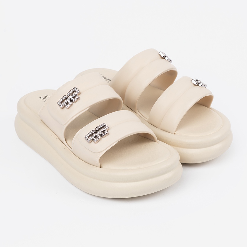 Die 4 cm hohe Plattform betont die Figur perfekt, ohne die Stabilität zu verlieren. Ein zusätzlicher Vorteil von Flip -Flops sind subtile Strasssteine, die ihnen Glanz verleihen und sie leicht mit ungezwungenen und eleganteren Stylisationen kombinieren lassen.