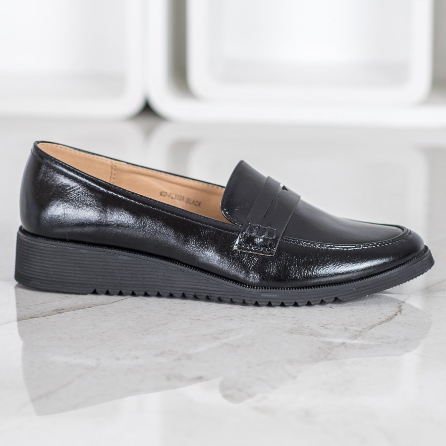 Entdecken Sie Eleganz und Komfort mit Goodin Damenmokassins in Schwarz. Diese stilvollen Schuhe aus hochwertigem Lackleder verbinden klassisches Design perfekt mit modernen Trends. Dank der glatten, schwarzen Oberfläche passen die Mokassins sowohl zu alltäglichen als auch zu formelleren Stilen perfekt, was sie zu einer hervorragenden Wahl für die Arbeit und verschiedene Feierlichkeiten macht.