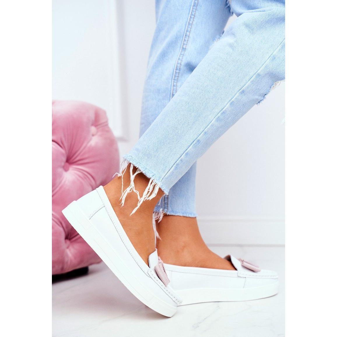 Details: S.Barski Loafer für Damen aus Leder Weiß und Rosa Lovren