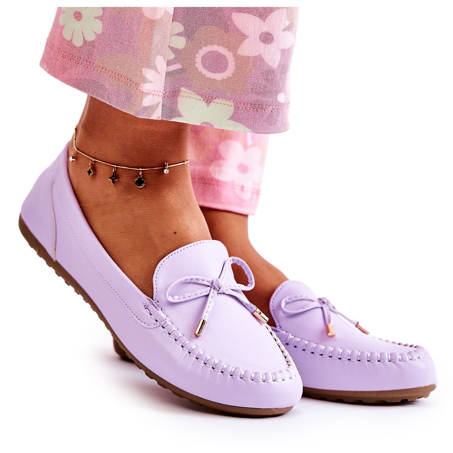 Wir präsentieren elegante und stilvolle Damen-Mokassins PG1 mit lila Schleife. Diese klassischen Schuhe sind sorgfältig aus Faux-Wildleder gefertigt, was sie nicht nur ästhetisch, sondern auch umweltfreundlich macht. Die violette Farbe verleiht ihnen einen einzigartigen Charakter und die dezente Schleife auf der Vorderseite unterstreicht ihren femininen Charme.