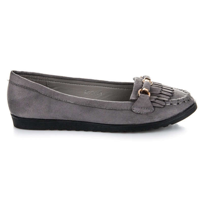 Die Fransen sind ein interessantes Detail, das diese Schuhe auszeichnet und ihnen einen leicht lässigen, aber schicken Look verleiht. Dank der universellen grauen Farbe passen diese Mokassins perfekt sowohl zu alltäglichen als auch zu formelleren Stilen.