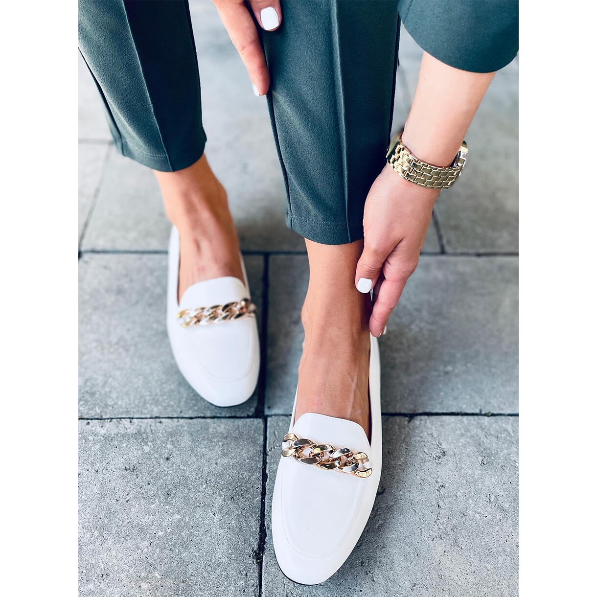 Wir empfehlen Ihnen, Addison White-Kettenmokassins zu Ihrer Garderobe hinzuzufügen und ihren einzigartigen Stil und Alltagskomfort zu genießen. Jedes Paar ist in der Originalverpackung des Herstellers verpackt, was sie auch zu einer attraktiven Geschenkidee macht. Wagen Sie eine modische Metamorphose und entdecken Sie neue Styling-Möglichkeiten mit diesem einzigartigen Modell!