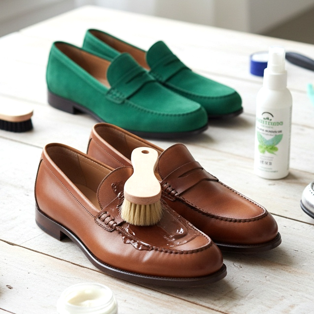 Loafer sind Schuhe, in die es sich zu investieren lohnt und mit deren guter Pflege Sie viele Saisons lang Freude daran haben werden. Bei Ledermodellen erhält das regelmäßige Polieren mit einer speziellen Creme die Elastizität des Materials und beugt Rissen vor. Vor dem ersten Tragen ist die Imprägnierung mit einem wasserfesten Spray ein zwingender Schritt.