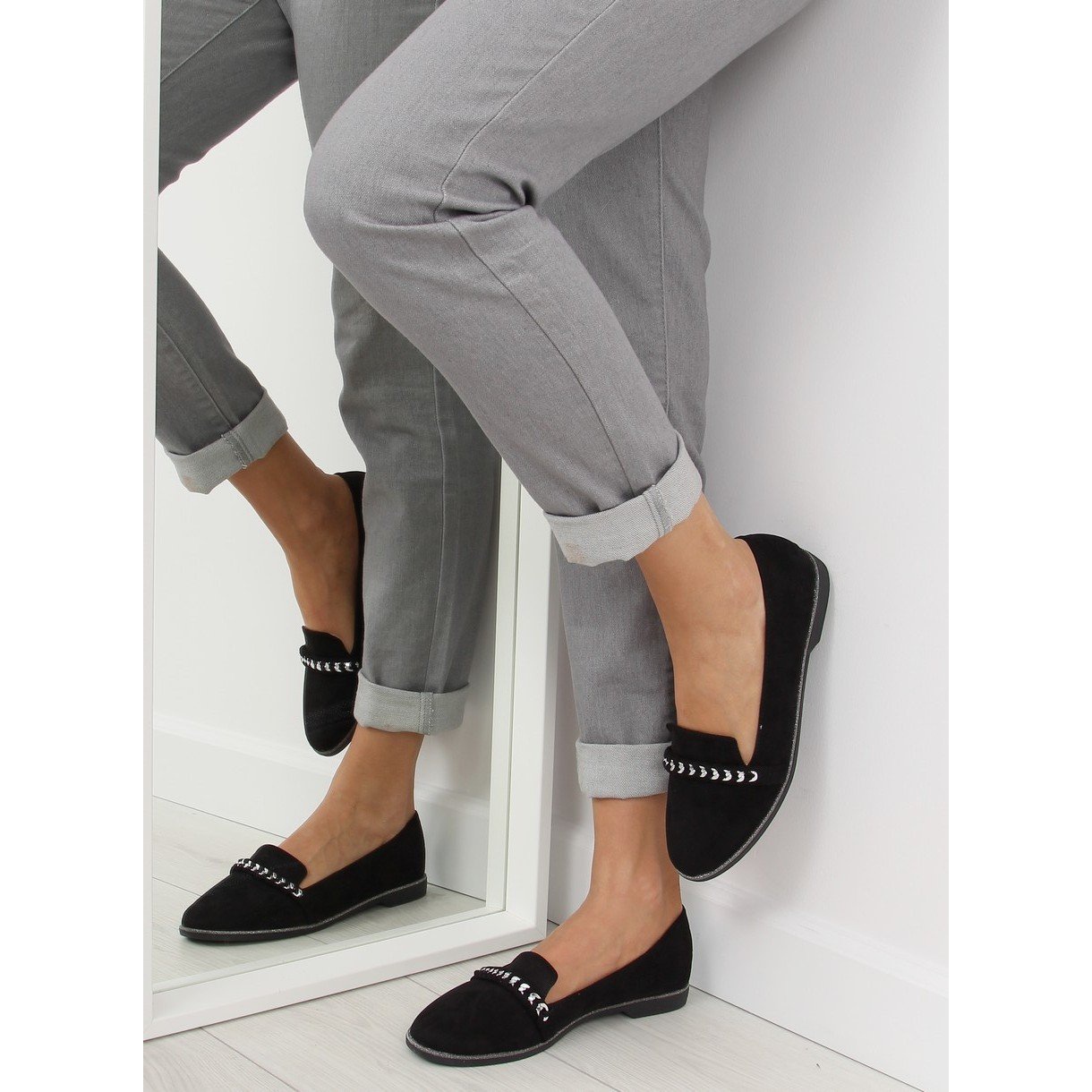 Entdecken Sie Eleganz und Komfort mit den schwarzen Loafern N76 von Black Lords! Diese wunderschönen Damenschuhe aus ökologischem Wildleder werden mit ihrem einzigartigen Stil sicherlich alle Blicke auf sich ziehen. Eine eindrucksvolle Borte mit Kettenelementen verleiht ihnen einen einzigartigen Charakter und der glänzende Silberbesatz unterstreicht ihre Eleganz.