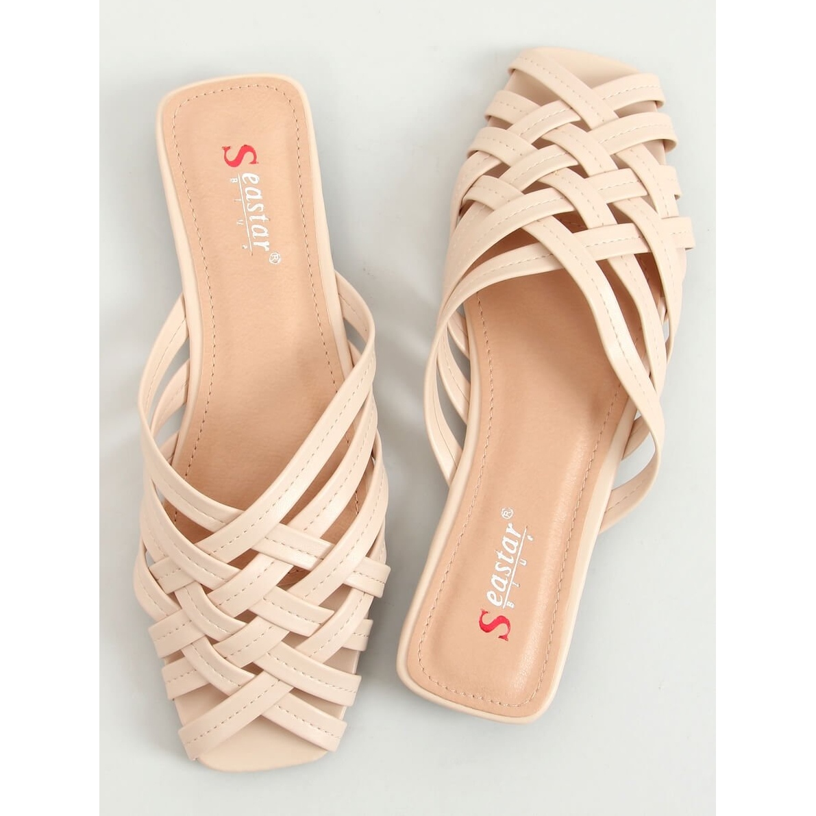 Inna marka Loretta Beige geflochtene Damenhausschuhe
