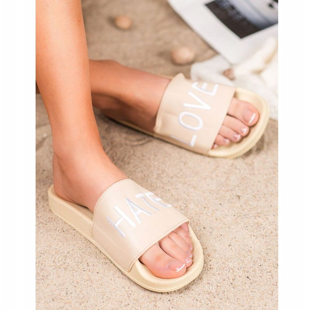 Suchen Sie Sommerschuhe, die sowohl stilvoll als auch bequem sind? Die kleinen Swan-zehenstegsandalen in Hellbraun sind die perfekte Wahl! Dieses Modell zeichnet sich durch sein modernes Design dank großer Aufschriften aus, die ihm einen originellen Charakter verleihen.