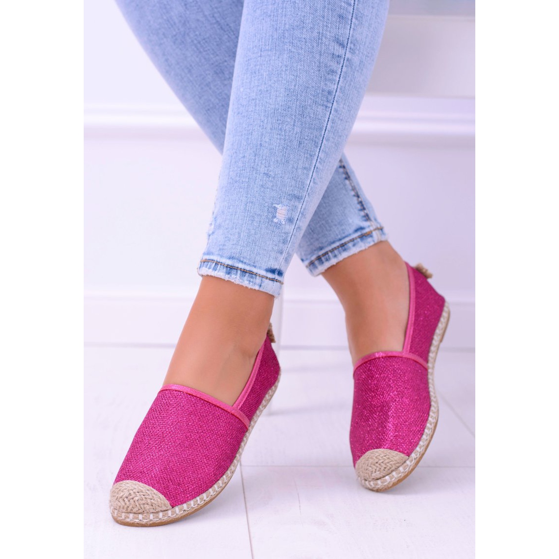 Entdecken Sie einzigartige Slip On Lu Boo Espadrilles für Damen in einem wunderschönen Fuchsia-Ton mit Glitzerakzent – das Modell Miravet. Diese äußerst stylischen Schuhe der renommierten Marke LU BOO sind ein echter Hit in der Modewelt, die perfekt zu jedem Sommer-Styling passen.