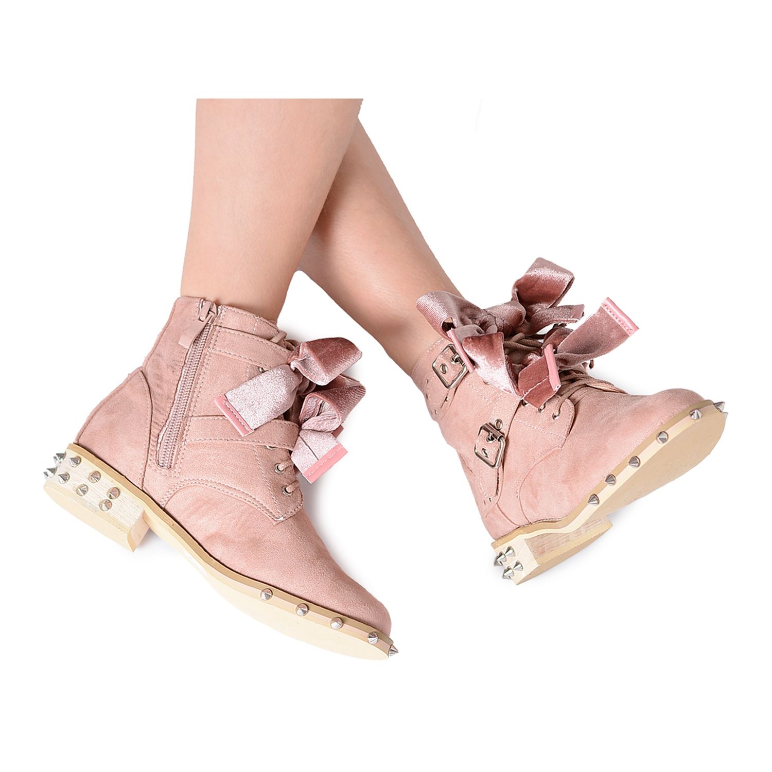 LU BOO Lu Boo | Kinderstiefel mit Nietenschleifen LittleCamila Powder Pink rosa