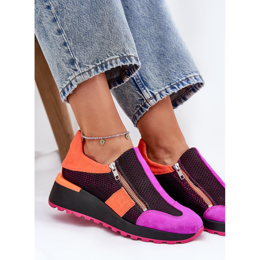 Finden Sie heraus, wie einfach es ist, sich dank einer Doppelschloss auf Schuhe zu setzen, das nicht nur Komfort bietet, sondern auch perfekt zu Ihrem Fuß. Ein zartes 5,5 -cm -Hochkeil verleiht Ihrer Zahl Leichtigkeit und garantiert während längere Tage den Komfort. Maciejka Sneakers ist eine perfekte Ergänzung für jede Frau, die Mode mit Funktionalität kombinieren möchte.