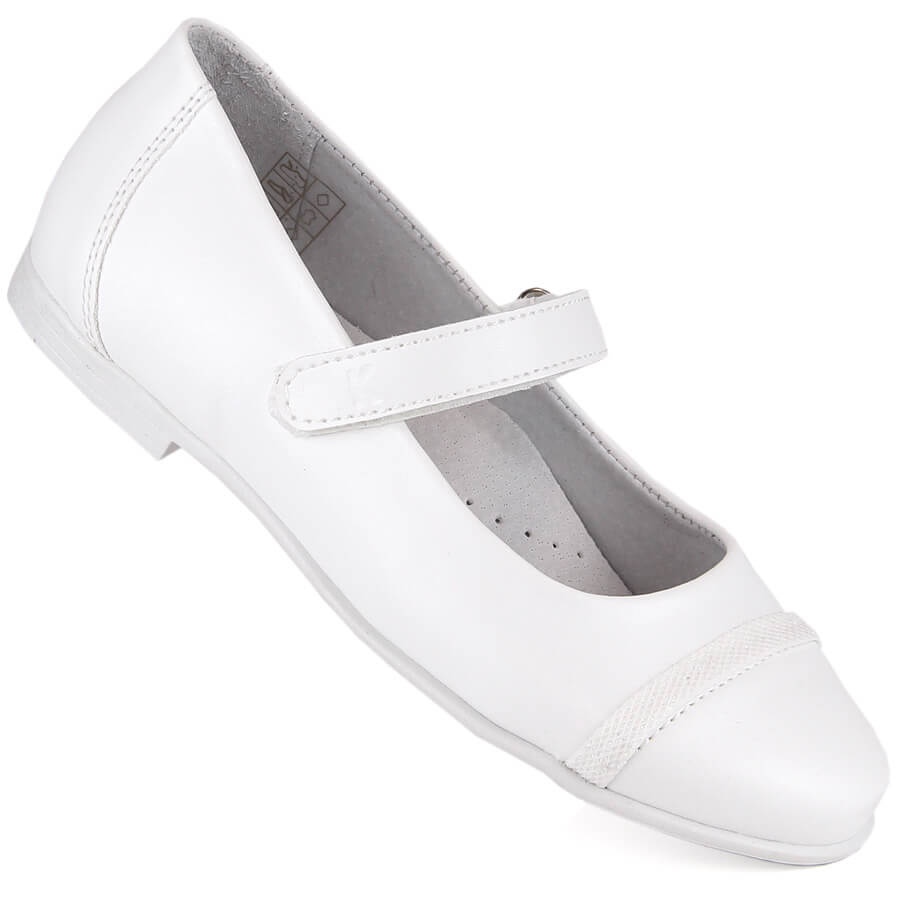 Die Mädchen-Ballerinas zur Erstkommunion Kornecki 6492 sind die perfekte Wahl für kleine Damen, die an diesem besonderen Tag elegant und stilvoll aussehen möchten. Diese wunderschönen weißen Schuhe sind aus hochwertigem ökologischem Leder gefertigt, das sowohl Ästhetik als auch Haltbarkeit gewährleistet. Darüber hinaus garantieren das Innenfutter und der Einsatz aus Naturleder ein angenehmes Tragegefühl auch über viele Stunden hinweg.