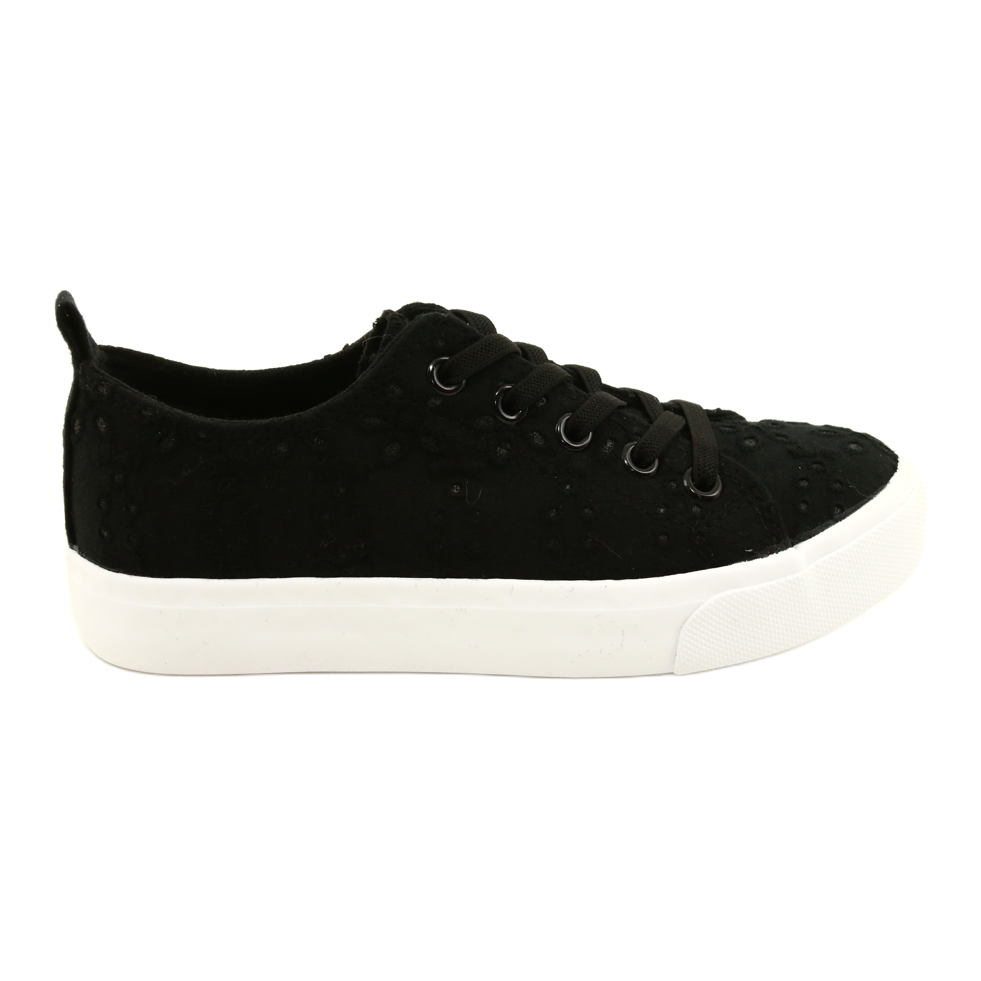 Ein leichtes und bequemes Modell von Turnschuhen für Mädchen, das klassisches Design mit praktischen Lösungen kombiniert. Das obere aus hochwertige schwarze Stoff ist das Innenraum auch mit Textilmaterial für den Komfort der Füße ausgekleidet. Die alleinige Auswahl aus elastischem Gummi in Weiß verleiht eine gute Haftung und schränkt die Bewegung nicht ein, und der steife Fester stabilisiert die Ferse während des Spiels und der Aktivität.
