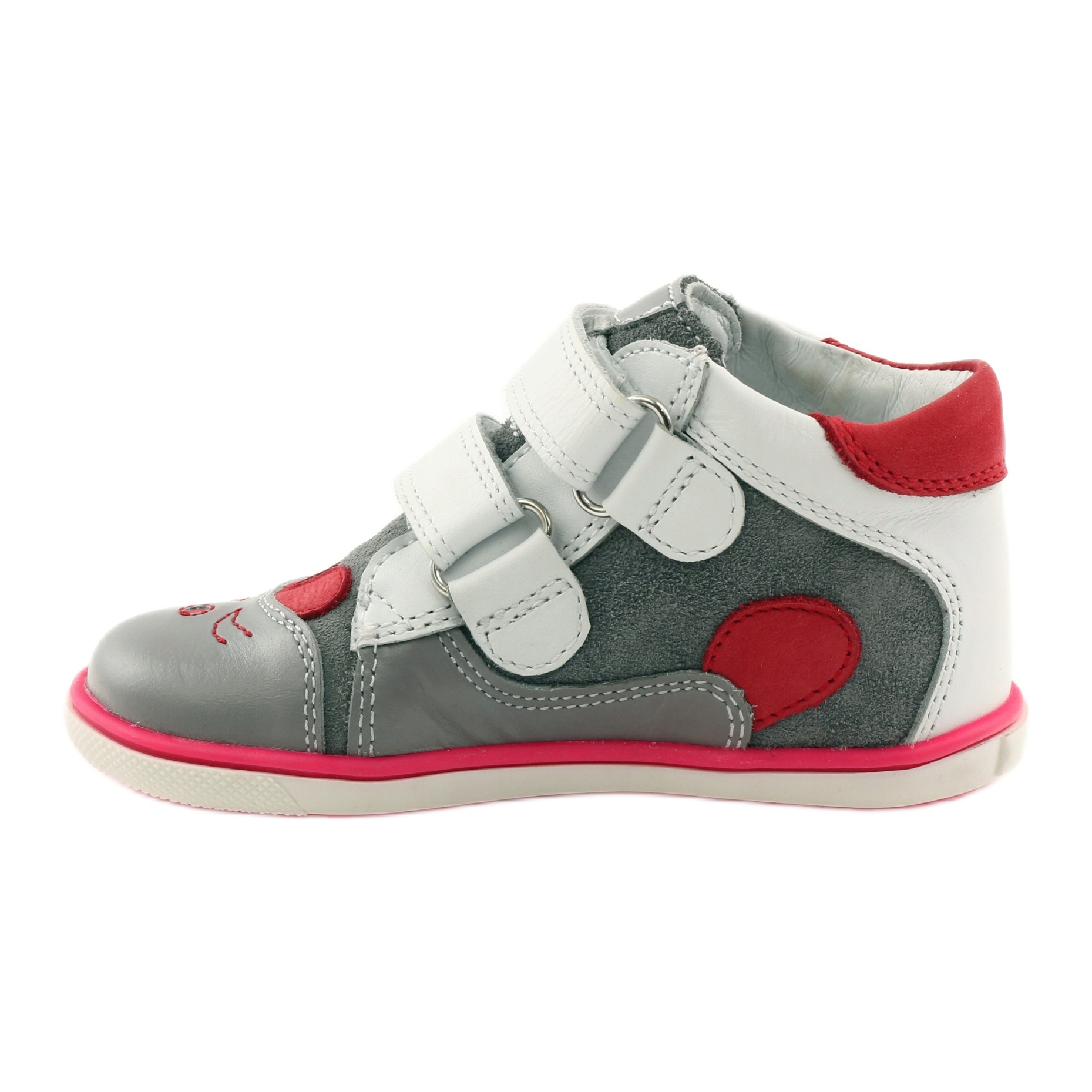 Bartek WZ.11702 Mädchenschuhe – Grau und Weiß mit roten Accessoires