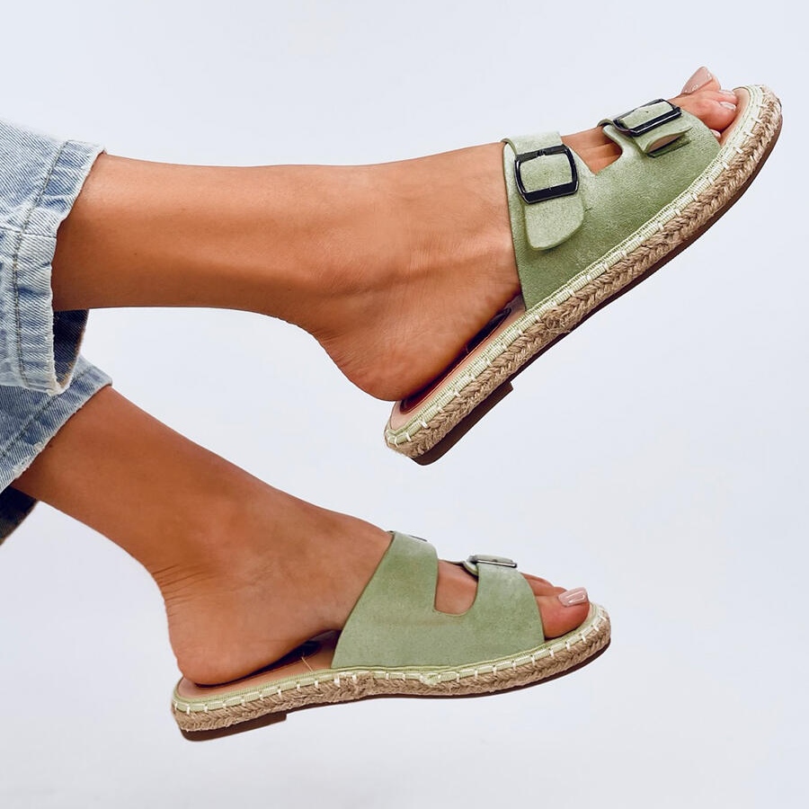Maina Green Espadrille-zehenstegsandalen in einem Grünton sind die perfekte Wahl für Sommertage. Aus hochwertigem ökologischem Wildleder gefertigt, sorgen sie nicht nur für einen stilvollen Look, sondern auch für Tragekomfort. Die für Espadrilles typische flache Sohle mit Leinenband sorgt für Leichtigkeit und einen lässigen Stil.