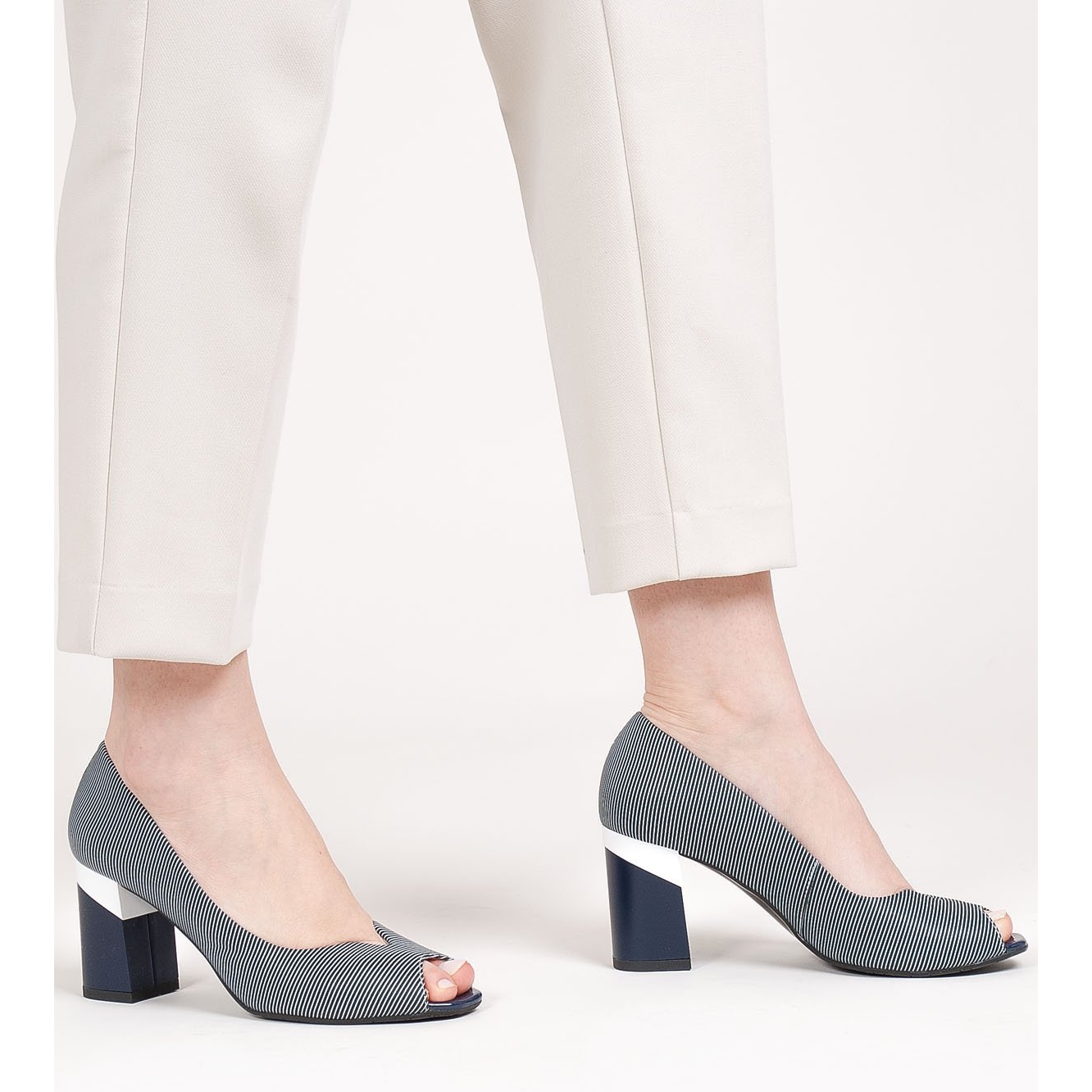 Das Produkt stammt aus der Kategorie der Damenpumps, bei der jedes Detail durchdacht ist, um die Erwartungen der anspruchsvollsten Kunden zu erfüllen. Das Innere der Schuhe ist mit Naturleder versehen, was Komfort bei ganztägigem Gebrauch garantiert. Dieses Leder ist weich und luftig und sorgt für eine ausreichende Luftzirkulation an den Füßen.