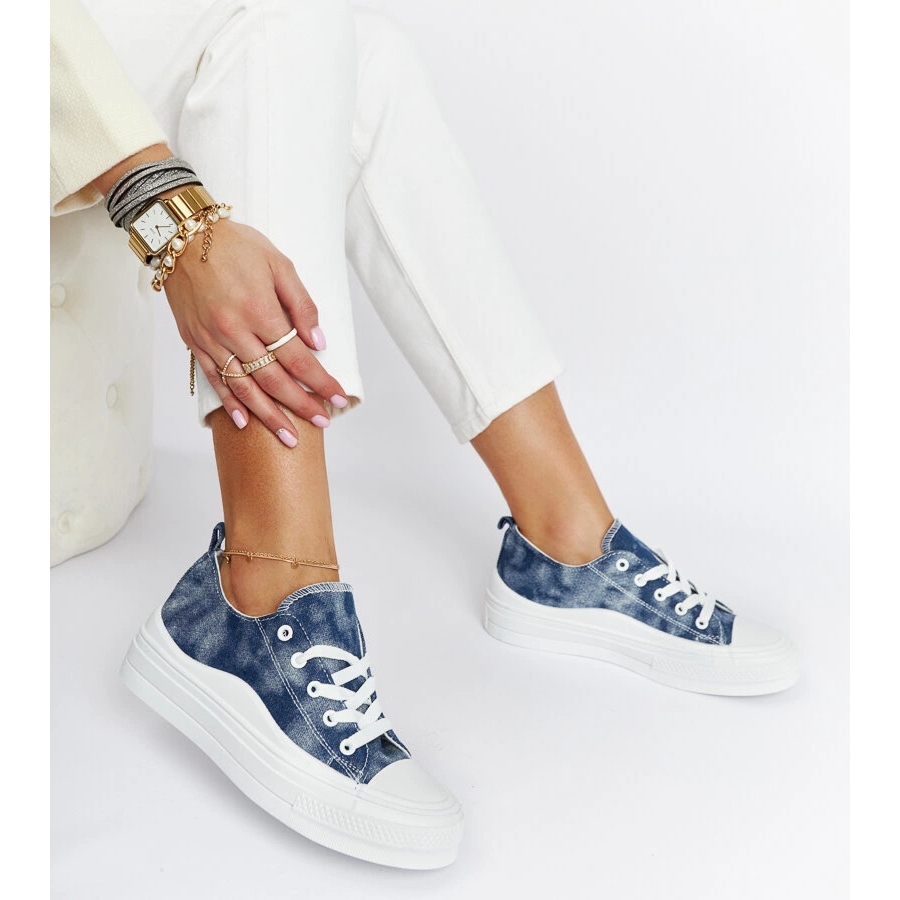 Navy-Turnschuhe auf der Blais-Plattform zu einem Must-Have in der Garderobe jeder modischen Frau. Dank seines eleganten Designs in einem Schatten von DK.Blue -Jeans kombinieren diese niedrigen Turnschuhe den Komfort effektiv mit modernen Stil und passt perfekt zu Sommertrends. Die Sohle aus hochwertigem Gummi bietet hervorragenden Griff und Komfort des Tragens, was sie sowohl für einen Spaziergang durch die Stadt als auch für Treffen mit Freunden perfekt macht.