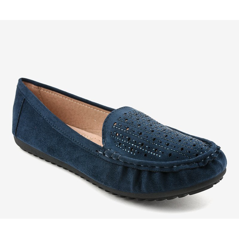 Details: Marineblaue durchbrochene Loafer mit Pailletten YSD823Y navy blau