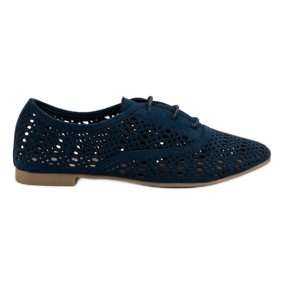 Ihr durchbrochenes Muster sorgt für Leichtigkeit und macht sie perfekt für warme Tage. Dank der marineblauen Farbe lassen sich diese Schuhe problemlos mit verschiedenen Stilen kombinieren – sowohl lässig als auch eleganter. Trotz des fehlenden Absatzes sorgt die Plateauhöhe von 1,5 cm für Komfort bei jedem Schritt.