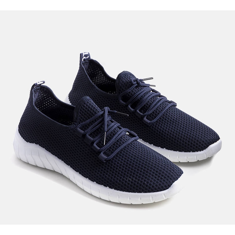 Turnschuhe wurden im minimalistischen Stil gestaltet, was sie mit verschiedenen Sportstilisierungen perfekt harmonieren, und ihre dunkelblaue Farbe mit einer weißen Sohle verleiht Eleganz und Frische. Perfekt sowohl für das Fitnessstudio als auch für alltägliche Produkte.