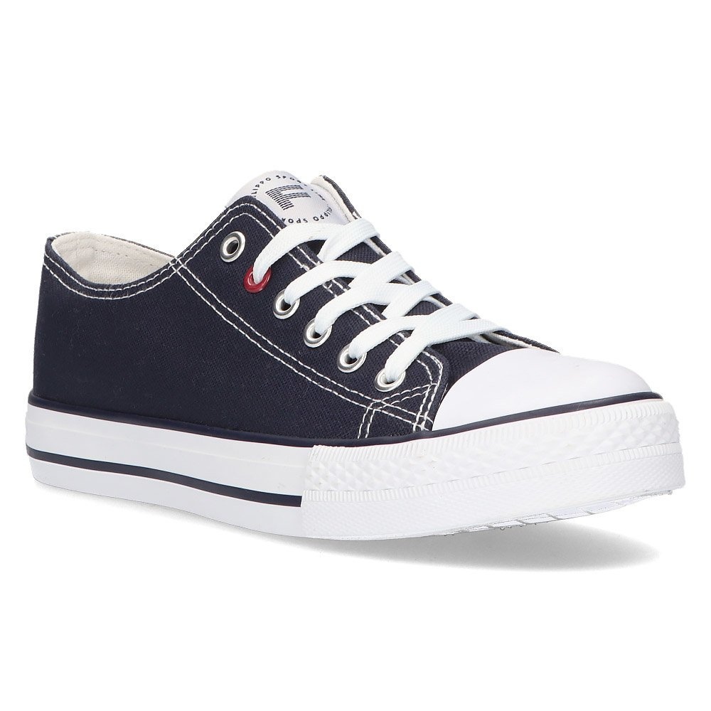 Das Modell DTN203/21 NV zeichnet sich durch einen niedrigen Schnitt und eine runde Spitze aus, die für Komfort im täglichen Gebrauch sorgt. Der Schnürverschluss ermöglicht eine genaue Anpassung an den Fuß und die leichte, 2 cm hohe Synthetiksohle ist langlebig und flexibel. Darüber hinaus sorgen das Stofffutter und der Stoffeinsatz für ausreichende Belüftung und Komfort im Alltag.