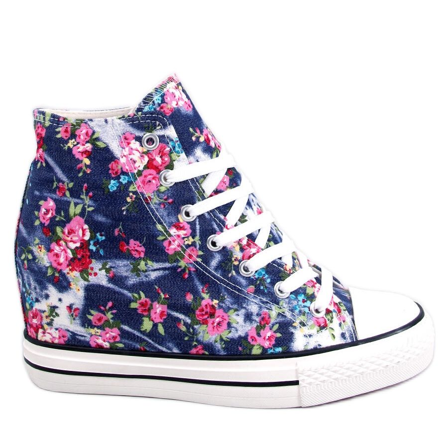**BM High Wedge Sneakers mit Blumen Paradis Marineblau**