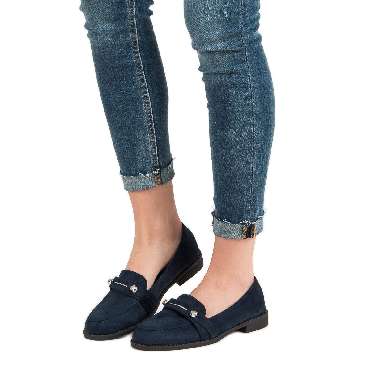 Marineblaue Nio Nio Mokassins sind eine ideale Wahl für Frauen, die sowohl Komfort als auch Eleganz schätzen. Diese klassischen Schuhe aus ökologischem Wildleder eignen sich perfekt für verschiedene Situationen und verleihen jedem Styling Eleganz und Charakter.