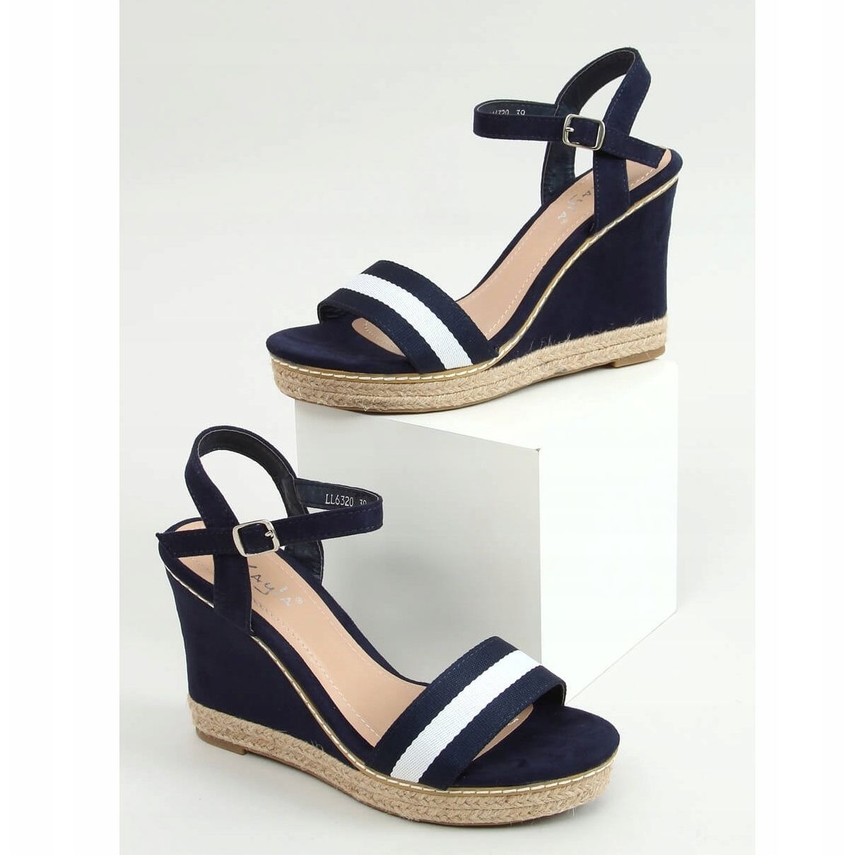 Inna marka Marineblaue Sandalen auf einem Keil LL6320 Blau navy blau