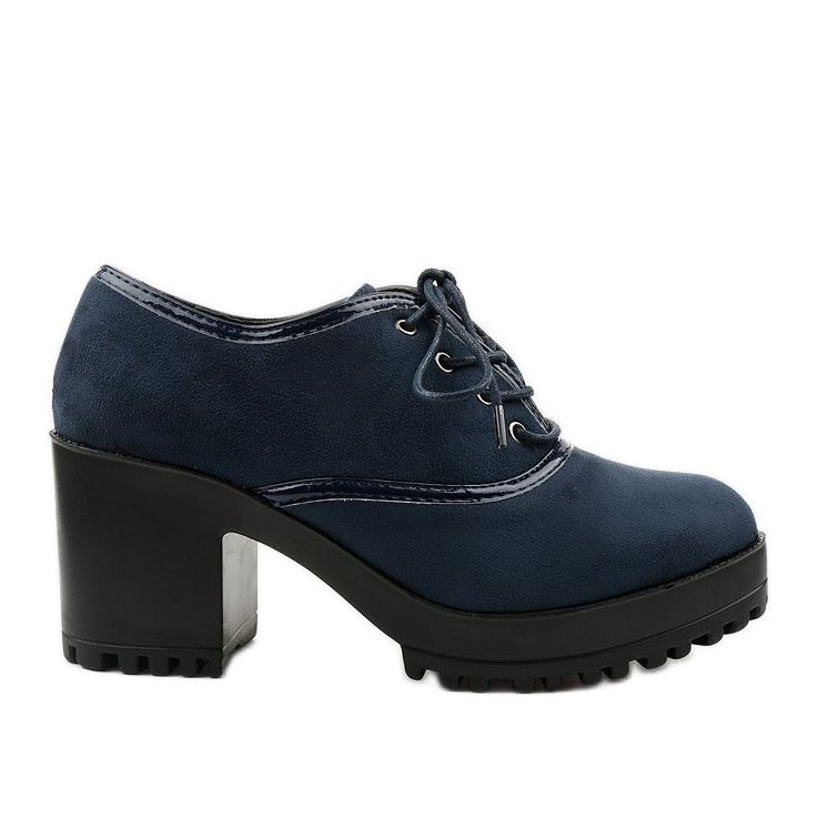 Details: Marineblaue Stiefeletten, die auf einem Clearfall-Block geschnürt werden