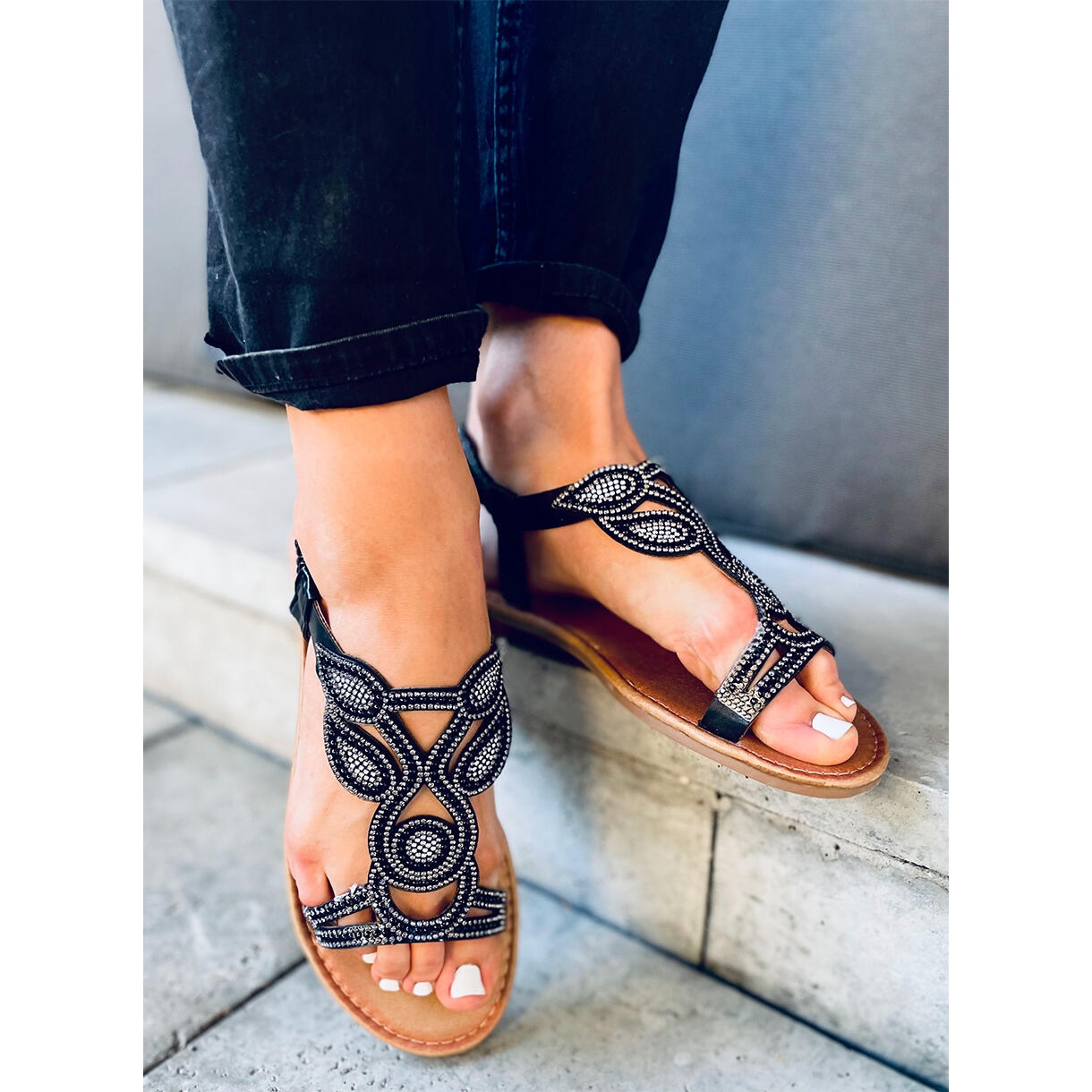 Entdecken Sie Eleganz und Komfort mit den schwarzen Marion Black-Sandalen für Damen! Diese genarbten Sandalen sind die perfekte Kombination aus Stil und Komfort, die Ihr Alltags-Styling mit Sicherheit hervorheben wird. Ihre einzigartige Verzierung mit glänzenden Steinen und Perlen zieht die Blicke auf sich und verleiht jedem Look einen einzigartigen Charakter.
