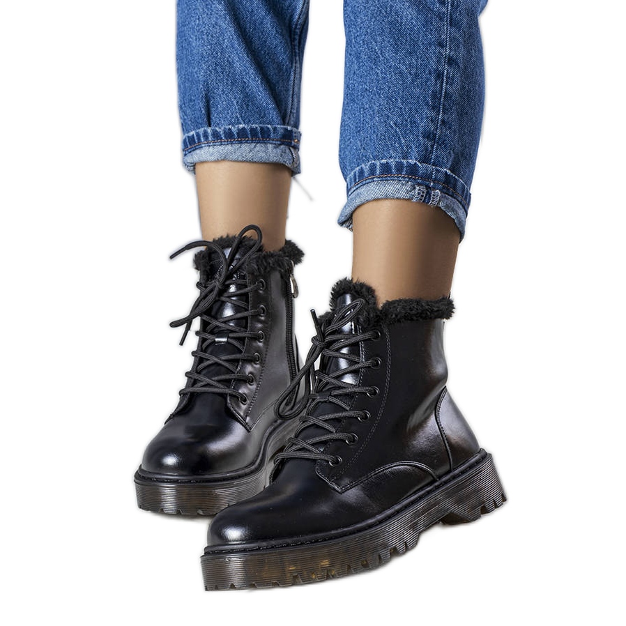 Schwarze Trapper mit Martola -Fell isoliert - Stil und Komfort für kühlere Tage
